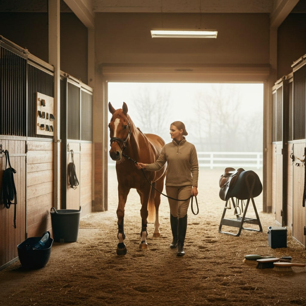 Rens derefter stalden for at holde dens plads ryddelig og komfortabel. En ren stald hjælper med at forebygge hovsygdomme og holder din hest glad.